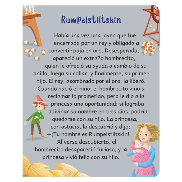 Descubre la magia de los hermanos Grimm con relatos inolvidables como Blancanieves, Hansel y Gretel, Caperucita Roja, Rapunzel y mucho más. Cada cuento, breve y adaptado para niños, está acompañado de ilustraciones encantadoras que transportan a mundos de bosques, castillos y criaturas mágicas. Perfecto para leer en voz alta, compartir en familia y vivir la fantasía página a página.