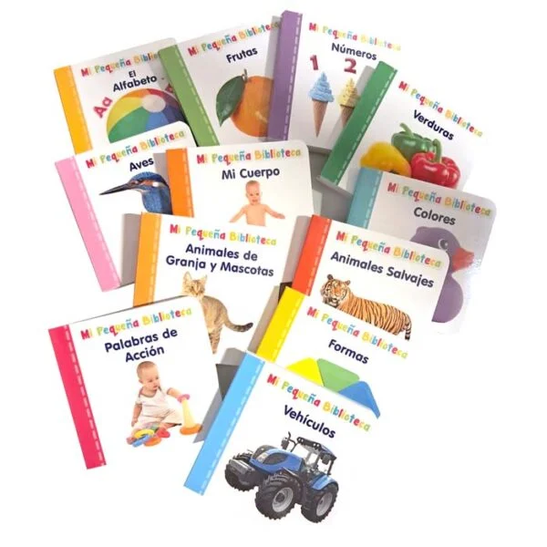• 12 libritos en cartoné plastificado de 9 x 9 cm, cada librito